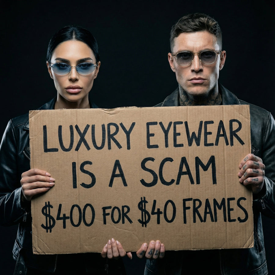 You're not paying for celebrity endorsements, flagship store rent, retail markup, or a logo tax. You're paying for premium acetate frames, multi-layer UV400 polarized lenses, hand-polished edges, and precision-cut lenses mounted with micro-screws instead of glue.
